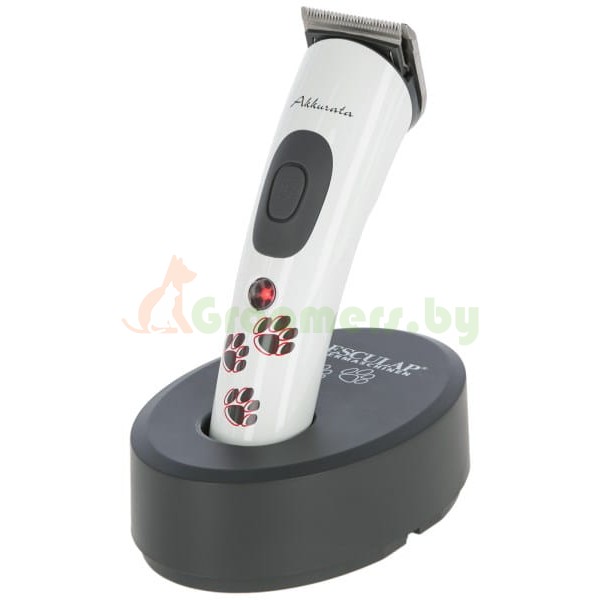 Профессиональная аккумуляторная машинка для стрижки животных Aesculap Akkurata, тихая, мощная, с возможностью работы с кабелем. Машина очень легкая, очень удобная и прочная, с регулируемым лезвием. Благодаря тонкой форме он идеально лежит в руке. В комплект входит аккумулятор, обеспечивающий 100 минут непрерывной работы. Время полной зарядки аккумулятора составляет 60 минут. Зарядная станция имеет специальный ящик для хранения насадок.