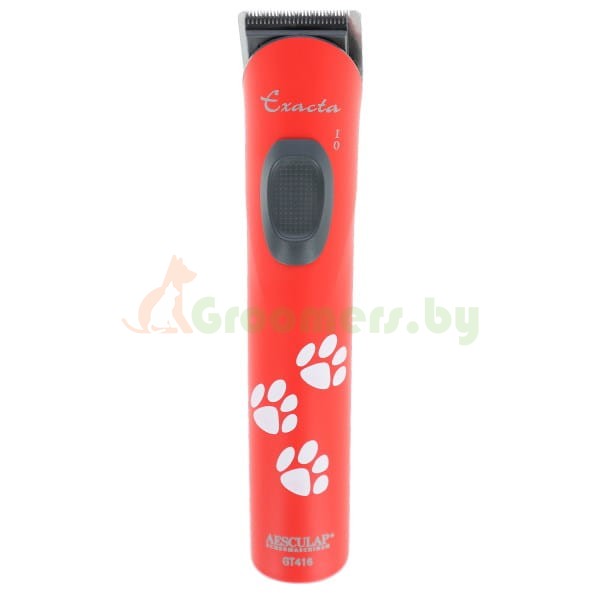Aesculap Exacta — профессиональная машинка для стрижки животных и финишный триммер с питанием от аккумулятора. Идеально подходит для отделочных работ, обрезки деталей вокруг лап, ушей и морды. Форма идеально лежит в руке, он очень легкий и тихий. Рекомендуется ветеринарным врачам для подготовки операционного поля. Он работает очень тихо благодаря использованию двигателя постоянного тока с низким уровнем вибрации и шумоподавлением. Поставляется с аккумулятором, обеспечивающим работу до 120 минут, время зарядки около 90 минут.