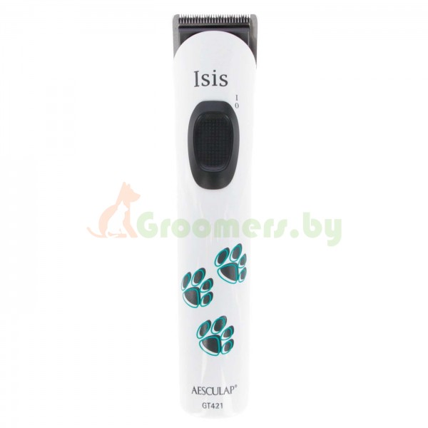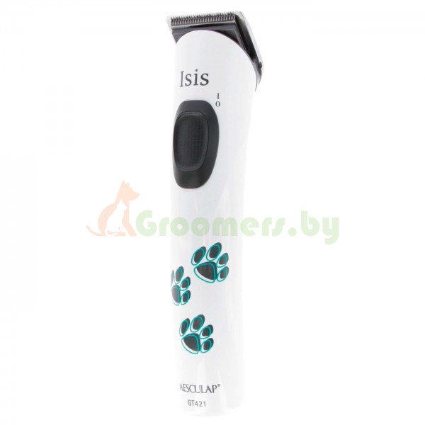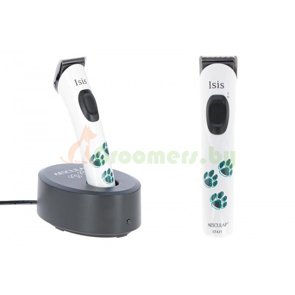 Aesculap GT421 Isis — профессиональная аккумуляторная машинка для стрижки и финишного триммера для животных от всемирно известной компании Aesculap. Идеально подходит для отделочных работ, вырезания деталей, вокруг лап и ушей. Рекомендуется ветеринарным врачам для подготовки операционного поля. Он работает очень тихо благодаря использованию двигателя постоянного тока с низким уровнем вибрации и шумоподавлением. В комплект входит литий-ионный аккумулятор, обеспечивающий работу до 120 минут, время зарядки около 90 минут.