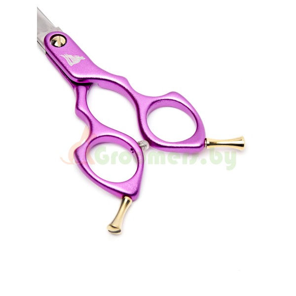 Komondor KV-29 Violet — профессиональные изогнутые ножницы длиной 6.5 дюймов, разработанные для точной и чистой работы в корейском и азиатском стиле груминга. Подходят как для оформления мордочки, лап, головы, так и для плавных округлых форм.