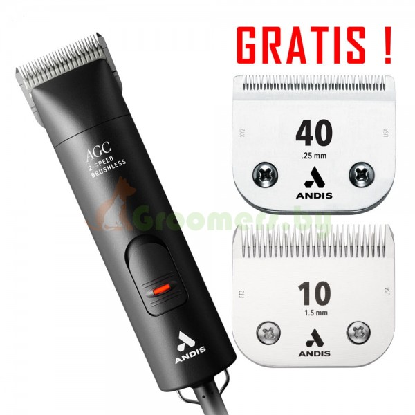 Andis - AGC 2 Speed Brushless - профессиональная двухскоростная машинка с бесщеточным двигателем и керамическим лезвием No 10 (1,5 мм) + лезвие UltraEdge 40 (0,25 мм) бесплатно