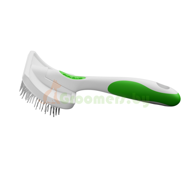 Благодаря средней жёсткости зубцов и эргономичной нескользящей ручке, щётка комфортна в использовании даже при длительной работе. Стимулирует рост здоровой шерсти и делает её более пышной и блестящей.