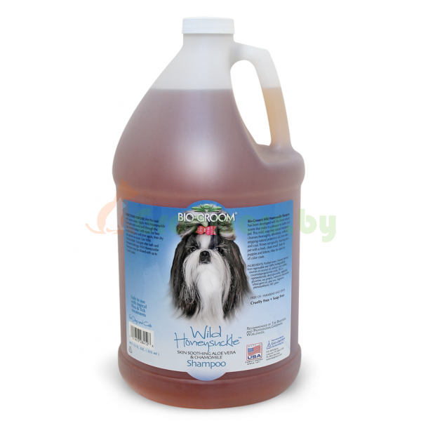 Bio-Groom Wild Honeysuckle — шампунь на основе аромата дикой жимолости, созданный для стимуляции чувств, очаровывания своим ароматом и прекрасного очищения. Купаться с ним – настоящее удовольствие. В состав входят натуральные ингредиенты с добавлением ромашки и алоэ. Содержит 100% натуральное алоэ, которое обладает увлажняющими и заживляющими свойствами для кожи, успокаивает раздражения. В его состав входят натуральные чистящие средства из кокосового масла, известные своей мягкостью, и соевый протеин, укрепляющий и питающий шерсть и кожу. Средство не удаляет защитные масла с кожи и шерсти. Никакого мыла.