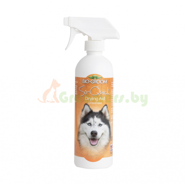 Bio-Groom So Quick Dog Drying Aid Spray – спрей для ухода за собаками, разработанный специально для сокращения времени высыхания собачьей или кошачьей шерсти после купания до 50%. Это сэкономит время грумеров и позволит купать больше питомцев в день. Идеально подходит для мелких животных, которые не могут долго оставаться мокрыми, а также собак с длинной или густой шерстью, для которых слишком долгое мокрое пальто оказывает негативное воздействие и может привести, например, к появлению плесени в подшерстке. Это также отлично подходит для домашних животных, которые не любят намокать!