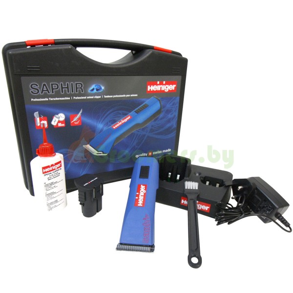 Heiniger Saphir — односкоростная беспроводная бритва от швейцарской компании Heiniger. Эта модель отвечает требованиям большинства грумеров и заводчиков – она обеспечивает 90 минут непрерывной работы без громоздкого кабеля. Бритва имеет легкую конструкцию, весит 410 г (с лезвием и аккумулятором). Во время работы он устойчив, достаточно тих и очень удобен. Лезвия Heiniger изготовлены с особой тщательностью из очень хорошей стали.