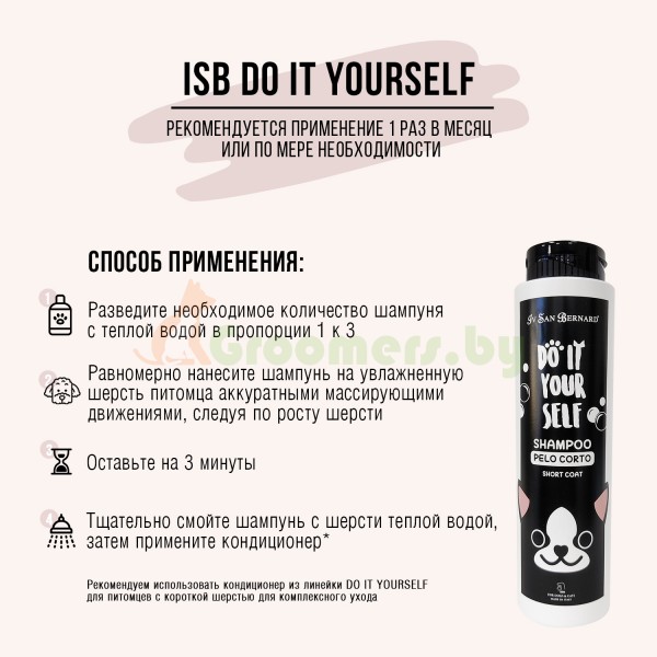 ISB DO IT YOURSELF Шампунь для животных с короткой шерстью 300 мл, DSHACO300, Iv San Bernard, КОСМЕТИКА ДЛЯ КОШЕК