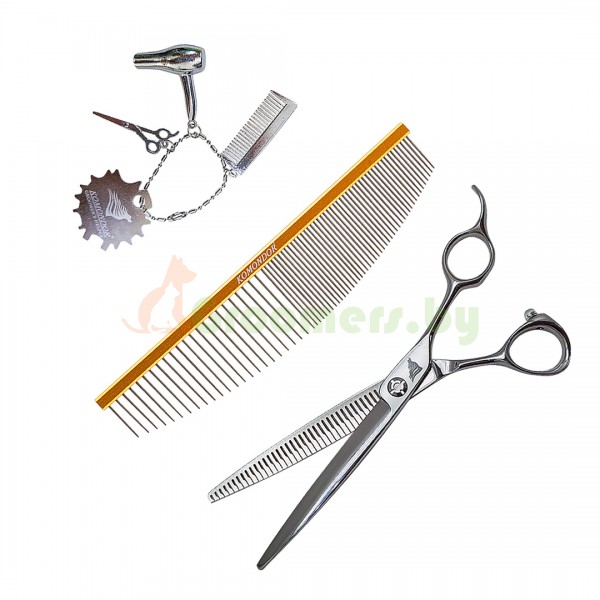 Набор для груминга KA-55 – шанкофилиры 7” + гребень Komondor 50/50 + подарок