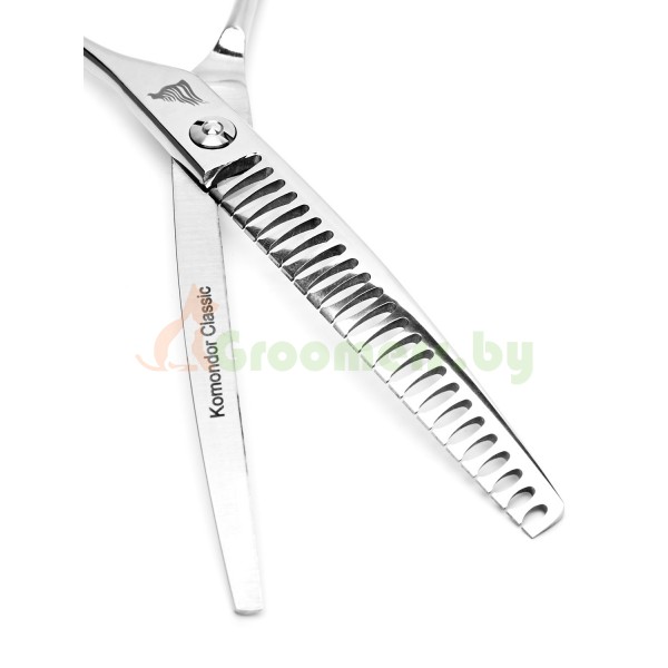 • KOMONDOR Classic KC-36 – шанкерные изогнутые ножницы 7”, обеспечивают плавный переход, текстуру и направление объёма. Идеальны для головы и туловища.