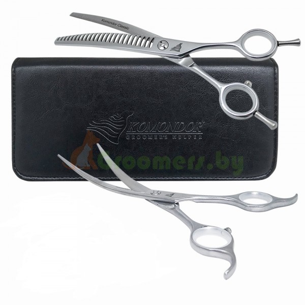 ножницы для объёма, груминг-комплект, KOMONDOR Classic, ножницы изогнутые, шанкерные ножницы, Hitachi 440C, ножницы для пуделя, корейский стиль, груминг инструменты