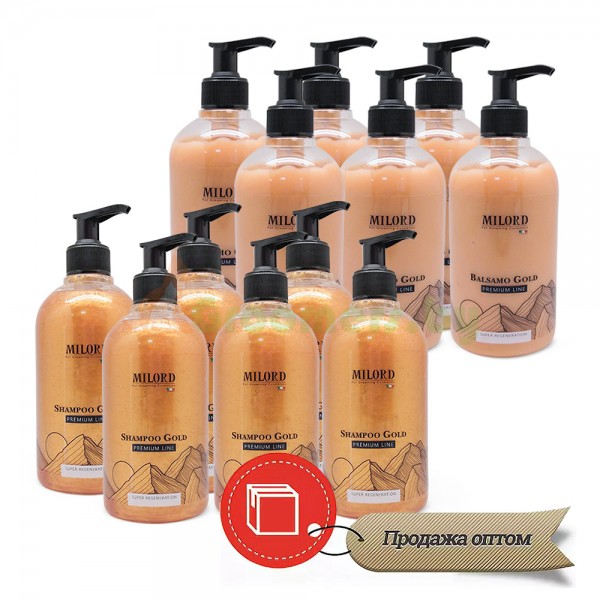 Набор MILORD Премиум GOLD коробка - шампунь 6шт и бальзам 6шт по 500 мл