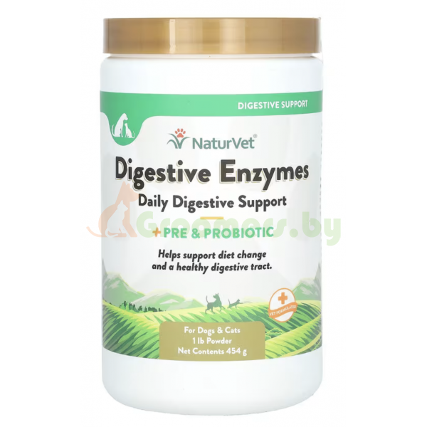 NaturVet, пищеварительные ферменты, ежедневная поддержка пищеварения, с пребиотиками и пробиотиками, для собак и кошек, 454 г, VET-03662, ДОБАВКИ ДЛЯ ЖИВОТНЫХ