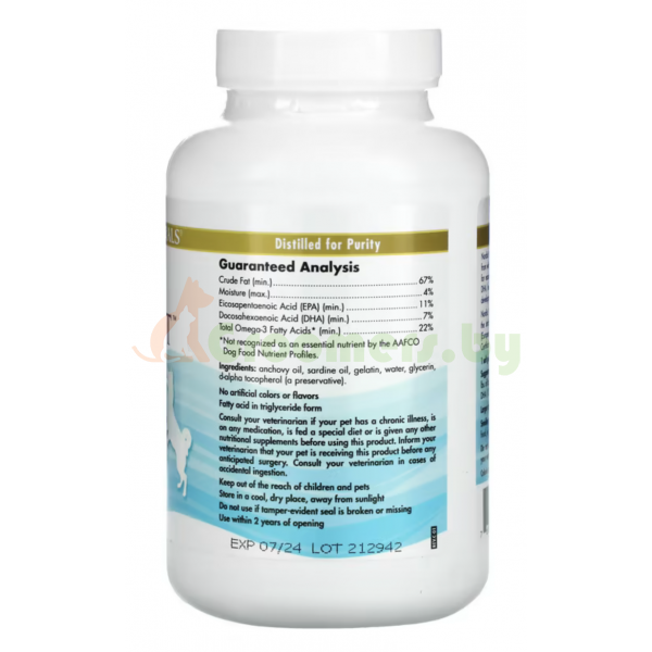 Ежедневное использование для собак Используйте одну гелевую капсулу на каждые 20 фунтов массы тела. 1 мягкая желатиновая капсула содержит 165 мг ЭПК / 105 мг ДГК / в общей сложности, 315 мг жирных кислот омега-3.
