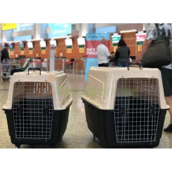 Прочная переноска для животных. Полностью соответствует стандартам "IATA", разрешено к провозу в самолете. На колесах, с длинной ручкой! Вес животного: до 60 кг.