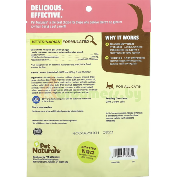 Pet Naturals, ежедневный пробиотик, для кошек, 30 жевательных таблеток, 36 г, PEN-97533, ДОБАВКИ ДЛЯ ЖИВОТНЫХ