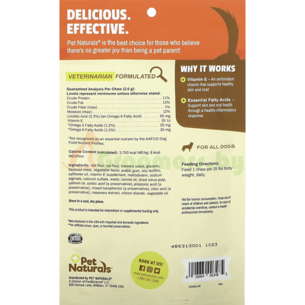 Pet Naturals, Кожа + мех, для собак, 30 жевательных таблеток, 2, 12 унции (60 г), PEN-00348, ДОБАВКИ ДЛЯ ЖИВОТНЫХ
