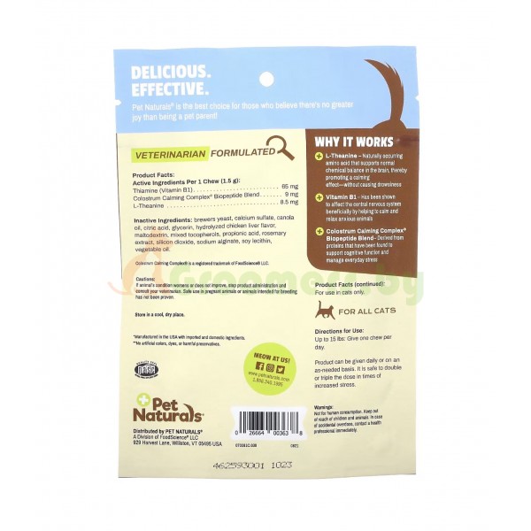 Pet Naturals, успокаивающие таблетки для кошек, 30 жевательных таблеток, 45 г, PEN-00363, ДОБАВКИ ДЛЯ ЖИВОТНЫХ