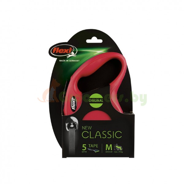 Поводок-рулетка для собак New Classic M 5 м ремень красный, 03220 6, Flexi, Поводки-рулетки FLEXI