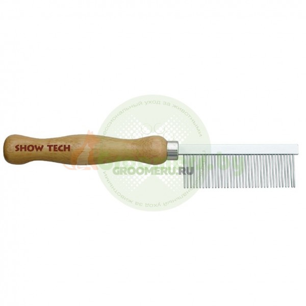 Гребень Show Tech длиной 18 см с деревянной ручкой. Длина зубчиков 22 мм, расстояние между зубчиками..