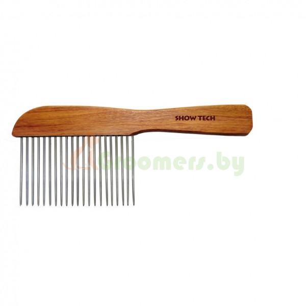 Гребень Show Tech длиной 22,5 см с деревянной ручкой. Длина зубчиков 65 мм, расстояние между зубчиками 5 мм.