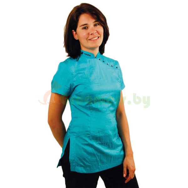 Рубашка изготовлена из 100% полиамид. Ткань предотвращает прилипание шерсти, имеет антистатический эффект, не пропускает воду и быстро высыхает при попадании на неё воды. Не мнётся, стирать при температуре не более 30°С, не гладить. Быстрая сушка.