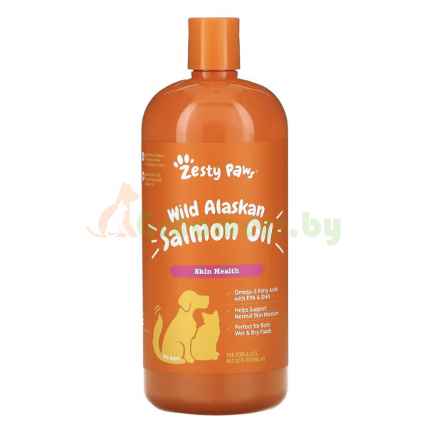 Zesty Paws, Масло дикого аляскинского лосося для собак и кошек, здоровье кожи, для всех возрастов, 946 мл, ZTP-00722, ДОБАВКИ ДЛЯ ЖИВОТНЫХ